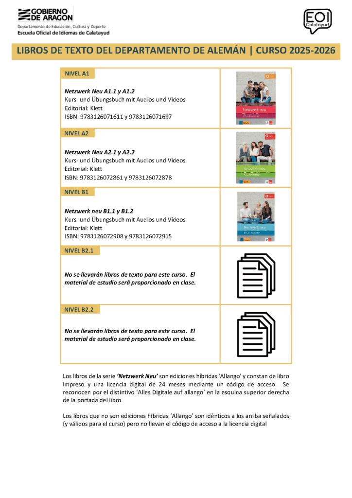 Los libros de texto del departamento de alemán para el curso 25-26 son los siguientes: