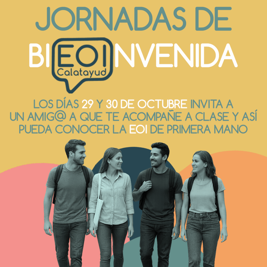 Si tienes algún amig@ que esté pensando en matricularse en la EOI pero aún no lo tiene claro, los días 29 y 30 de octubre pueden asistir a experimentar en primera persona una de nuestras clases. Sin ningún tipo de compromiso. Simplemente, avisa a tu profesor@ de que esa persona asistirá a esa clase (o a la del nivel que quiera probar) y preparaos para compartir una sesión de aprendizaje juntos.