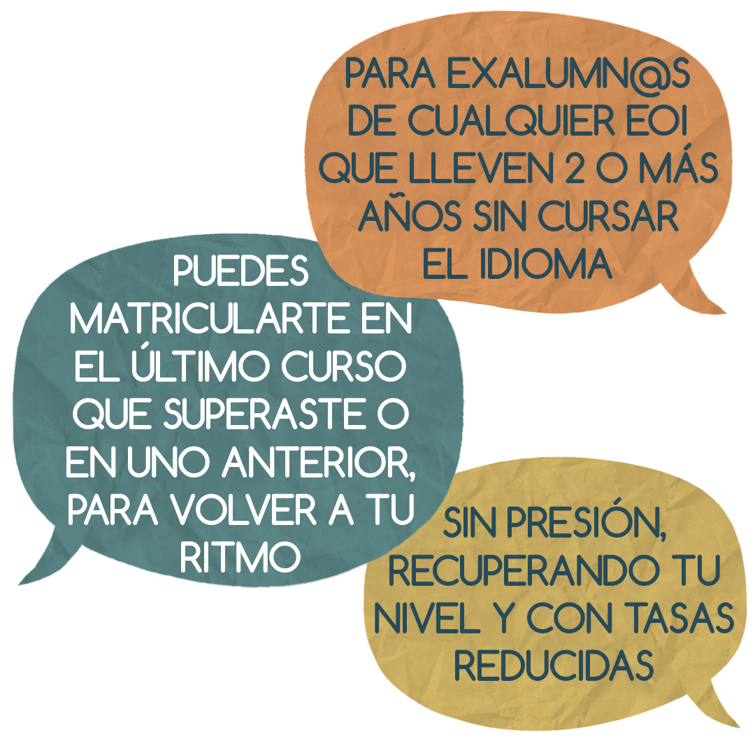 Para poder optar a ellos, sólo hace falta haber sido alumn@ oficial de esta o de cualquier otra EOI en el pasado y no haber cursado el idioma desde hace 2 años o más.